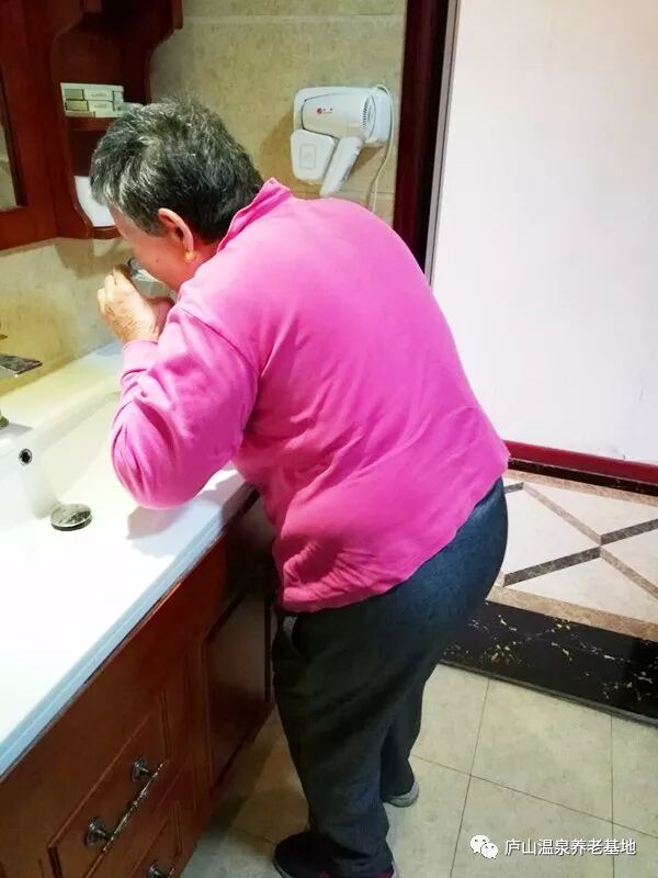 现在老人可以独立站着刷牙洗脸,大家都由衷的为她感到高兴。