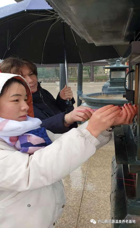 庐山温泉养老基地邻近中国及全球第一高阿弥陀佛像-东林大佛,俄国友人虔心为家人的健康祈福。