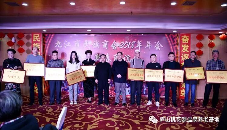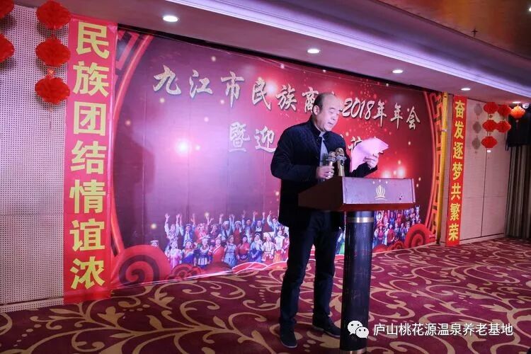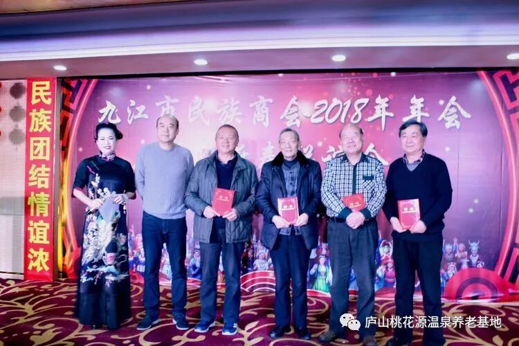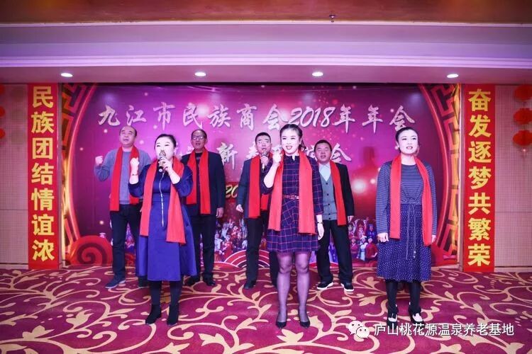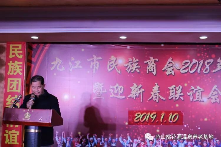 “2019年1月10日下午,九江市民族商会2018年年会暨新春联谊会在维也纳酒店隆重召开。九江市统战部,九江市民宗局,九江市工商联,九江市兄弟商会,浔阳区民宗局,庐山市委统战部,德安县委统战部,德安县民宗局,柴桑区民宗局,经济技术开发区民宗办等单位到场参会。”
