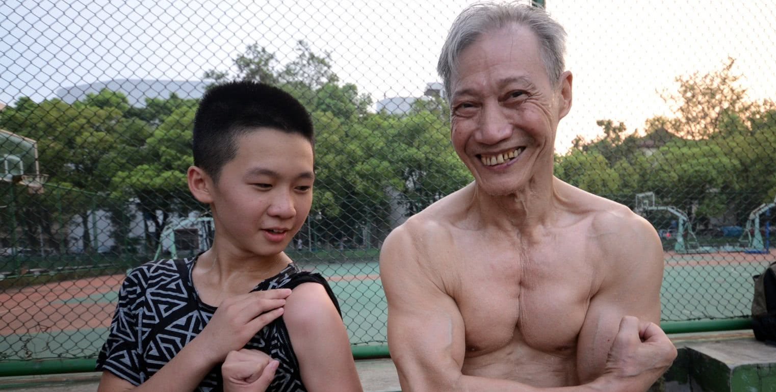 大部分人在看到邓伟涛的时候一直都以为只是五十岁的老人,运动是能够让人变年轻,还能让人全身都散发着满满的活力!这是邓伟涛跟自己的孙子在一起较量肌肉,孙子的梦想就是在长大之后能够拥有像爷爷这样的强壮的身体,能够保护自己的家人!
